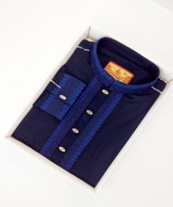 Exclusive Cotton Cuff Sleeve Embroidery Panjabi For Man-Navy Blue